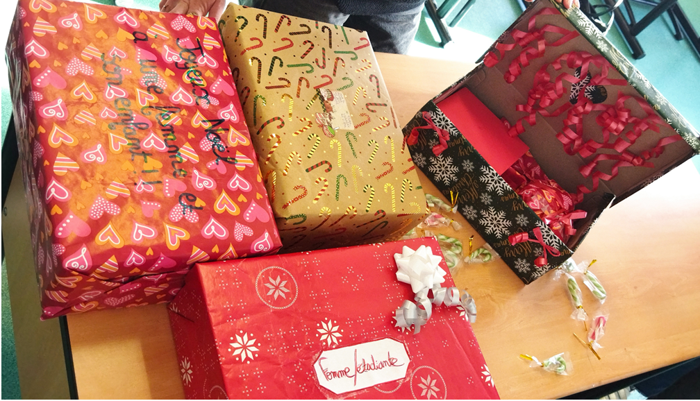 Les 2 classes de première st2s ont choisi de s'investir dans l’opération boites de noël en partenariat avec la radio RPA afin de faire un cadeau de Noël à celles et ceux qui en sont privés, accompagné d'un mot sur une carte de vœux.