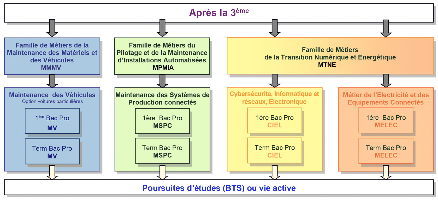 Quatre baccalauréats professionnels sont proposés :